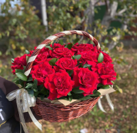 Корзина с красной французской розой и рускусом